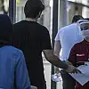 Yeni tip koronavirüse (Kovid-19) karşı önlemlerin alındığı sınavda, adaylara sınav binası girişlerinde görevliler tarafından maske ve dezenfektan dağıtıldı, isteyen adaylar yanlarında dezenfektan getirdi.