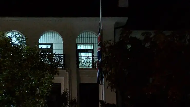 Kraliçe Elizabeth'in vefatının ardından İngiltere Büyükelçiliği'nde bayrak yarıya indirildi