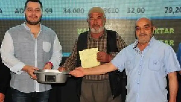 Yılın ilk mahsul arpasını satın alan tüccara ve satan çiftçiye Konya Ticaret Borsası tarafından hediyeler verildi.