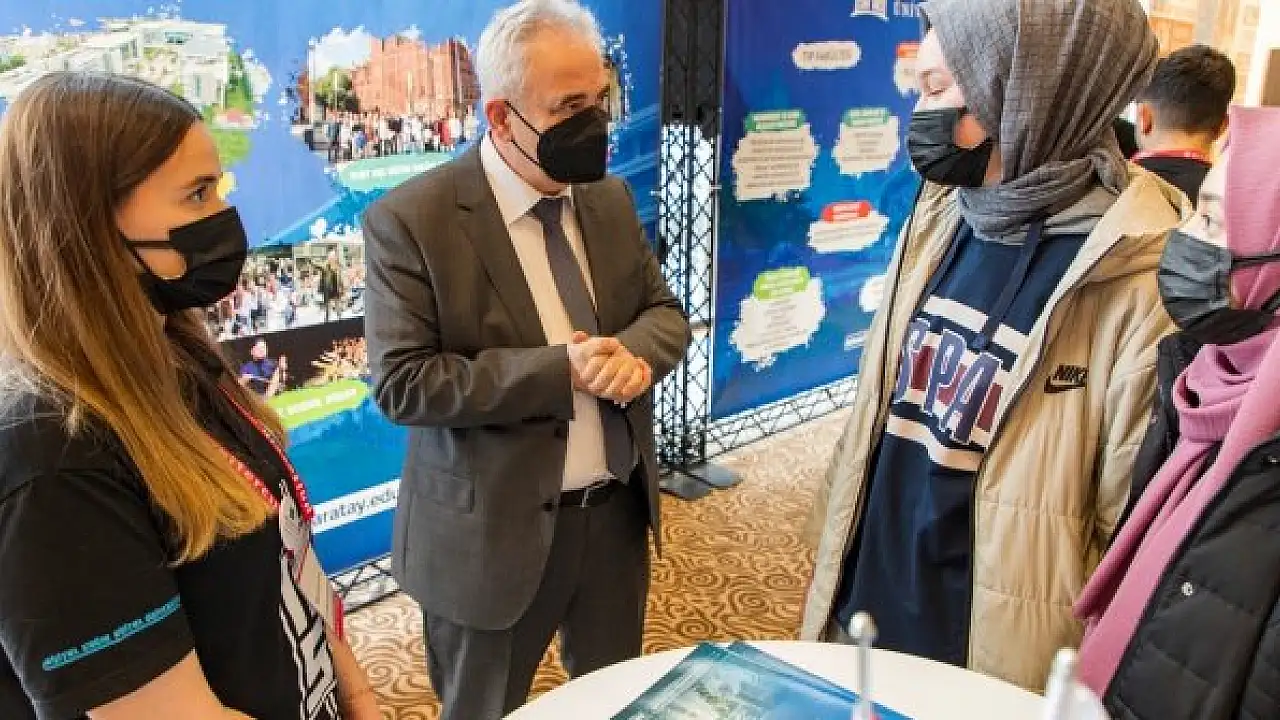 Konyalı üniversite adayları fuarda KTO Karatay Üniversitesi standına yoğun ilgi gösterirken, öğrenciler Rektör Prof. Dr. Fevzi Rifat Ortaç ile sohbet ederek fotoğraf çektirdi.