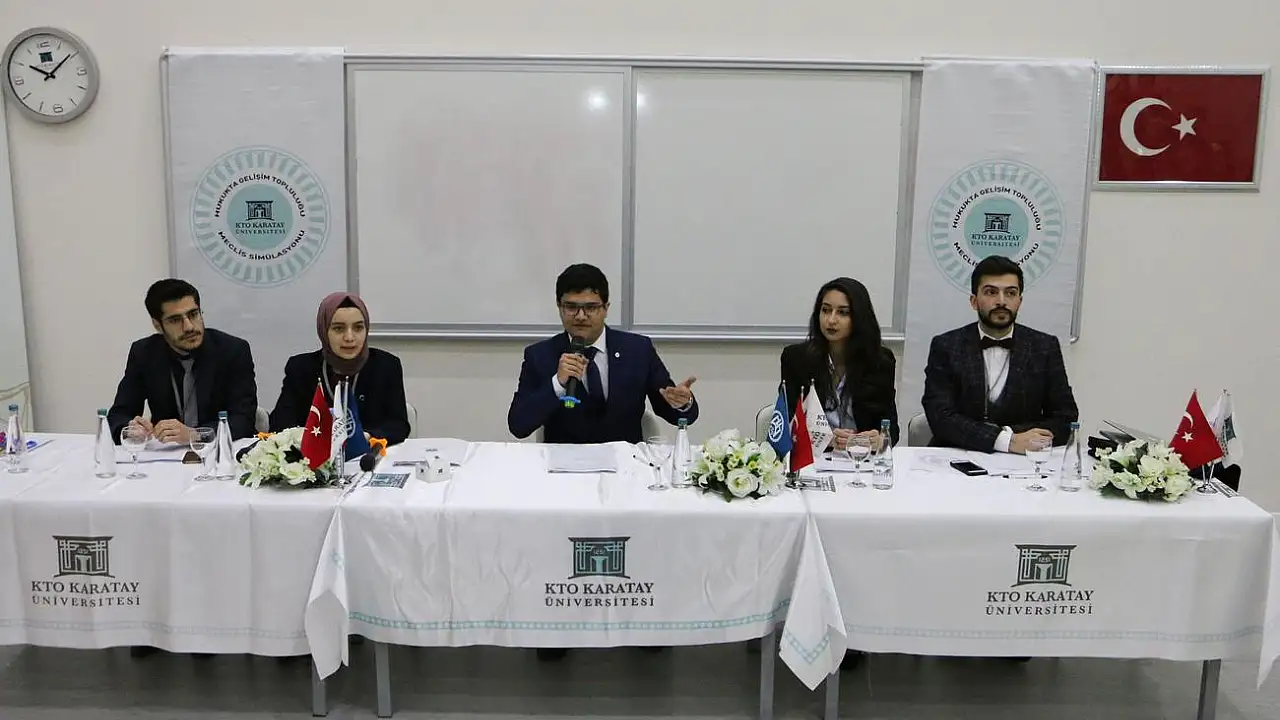 KTO Karatay Üniversitesi Hukukta Gelişim Topluluğu, Galatasaray Üniversitesi ve Gazi Üniversitesi Hukuk Kulüpleri ve Konya Barosu’nun da katkılarıyla parlamentodaki yasa yapım süreci ve TBMM’nin canlandırıldığı “Meclis Simülasyonu” etkinliği düzenledi. KTO Karatay Üniversitesi Hukuk Fakültesi TOBB Binası Şehit Demet Sezen Amfisinde İstanbul Üniversitesi, Galatasaray Üniversitesi, Gazi Üniversitesi, Selçuk Üniversitesi, Necmettin Erbakan Üniversitesi ve Hacı Bayram Veli Üniversitesi’nden öğrencilerin de katılımlarıyla düzenlenen programın 1. Yasama Yılı 1. Yasama Dönemi, mazbataların takdimi ve mecliste milletvekili yemini edilmesi ile başladı.