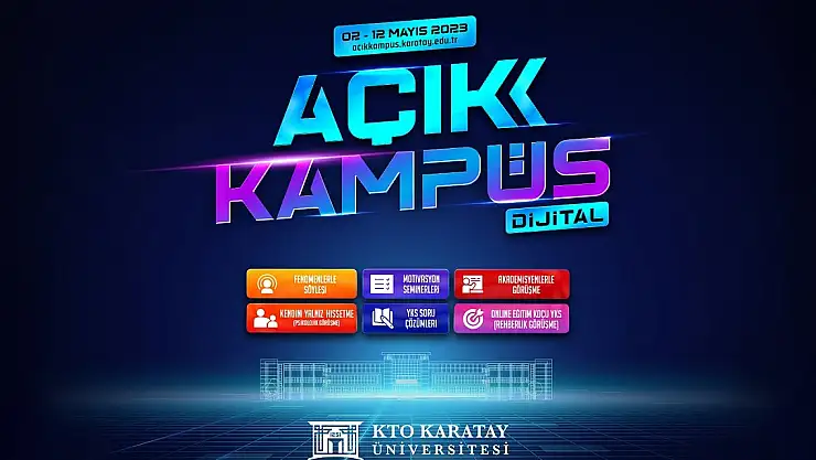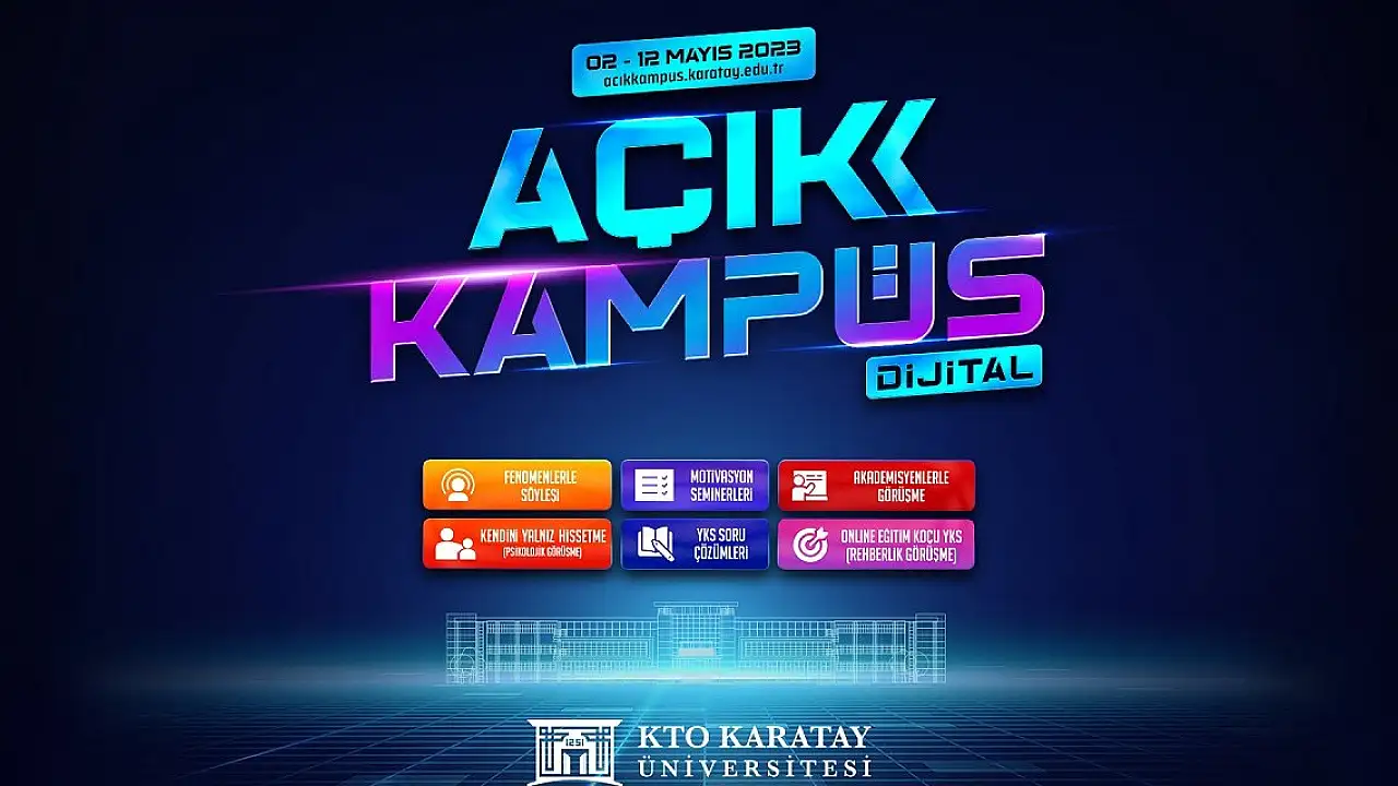 KTO Karatay Üniversitesi tarafından düzenlenecek “Açık Kampüs Dijital” Projesi ile deprem bölgesi başta olmak üzere tüm lise öğrencileri için üniversite kampüsünde bulunan bütün imkanlar dijital dünyada da öğrencilerin kullanımına açılacak. Proje ile birlikte öğrenciler, fenomenlerle görüşerek başarı öykülerini dinleyebilecek, online eğitim koçları ile YKS öncesinde son taktikleri gözden geçirebilecek, YKS'ye dair çözemedikleri soruları uzman kişilere sorabilecek, seminerlerle geleceğin mesleklerini keşfedebilecek, akademik konularda akademisyenlerden yanıt alabilecek, motivasyon seminerleriyle başarılarını artırabilecek, "Kendini Yalnız Hissetme" ve "Online Eğitim Koçu ile YKS Öncesi Son Taktikler" gibi bireysel etkinliklere de katılabilecek.