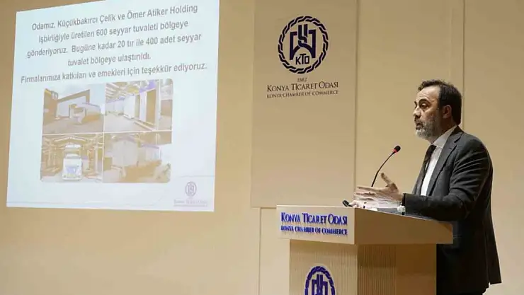 Afetin yaşandığı ilk saatlerden itibaren Konya Valiliği, AFAD ve TOBB koordinasyonunda faaliyet yürüttüklerini belirten Öztürk, "Oda olarak deprem haberi duyulur duyulmaz koordine bir şekilde bölgeye yardımlarımızı ulaştırmak için çalışmalara başladık. Odamız bünyesinde oluşturduğumuz Deprem Yardım Masası'nın koordinesinde hem Oda olarak bölgeye yardımlarımızı gönderdik hem de duyurularımızla üyelerimizi harekete geçirdik. Depremin yaralarını sarmak için ilk on günde Odamızın organizasyonu ile toplam 34 yardım TIR'ını bölgeye gönderdik. Acil ihtiyaç malzmesi içeren ayni yardımlarla birlikte, iş makinesi, seyyar mutfak ve fırın, konteyner, vinç, jeneratör, seyyar tuvalet ile teknik personel ve araç deprem bölgesine ulaştırıldı. Bölgede ihtiyaç malzemelerin yeterli sayıya ulaşmasının ardından gelen talepler doğrultusunda hareket ettik. Bölgeye 600 seyyar tuvaleti göndermeye başladık. Şu ana bölgeye gönderdiğimiz seyyar tuvalet ve konteynerlerin de yer aldığı TIR'lar dahil olmak üzer 100'ün üzerinde yardım TIR'ı göndermiş olduk" diye konuştu.