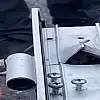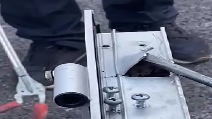 SİVAS'ta, kadın kuaföründe kapının içine giren, 1,5 metre boyundaki yılan, itfaiye ekiplerince bir bölümü kesildikten sonra yakalama aparatıyla çıkarıldı.