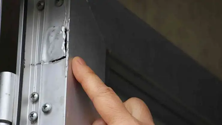 Sivas'ta kadın kuaförünün kapısına giren yılan paniğe neden oldu, yılan çıkartılamayınca kapı itfaiyeye götürüldü.