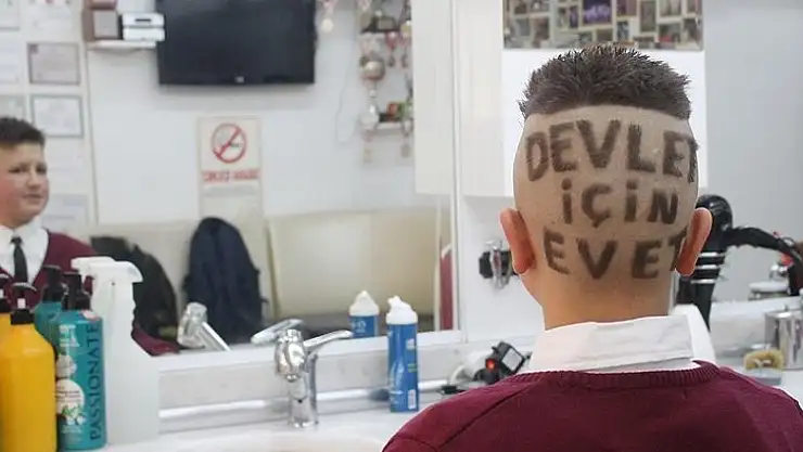 Ankara'nın Çankaya ilçesindeki Emek Mahallesi'nde kuaförlük yapan, Türkiye Berberler ve Kuaförler Milli Takım Kaptanı Münür Önkan, AA muhabirine yaptığı açıklamada, referanduma sunulacak anayasa değişikliğine destek vermek için çırağının kafasının arkasını "Devlet İçin Evet" şeklinde kazıdığını anlattı.
