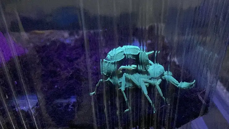 Küçük bir odanın içerisinde 3 bin adet mavi akrep yetiştiriyor
