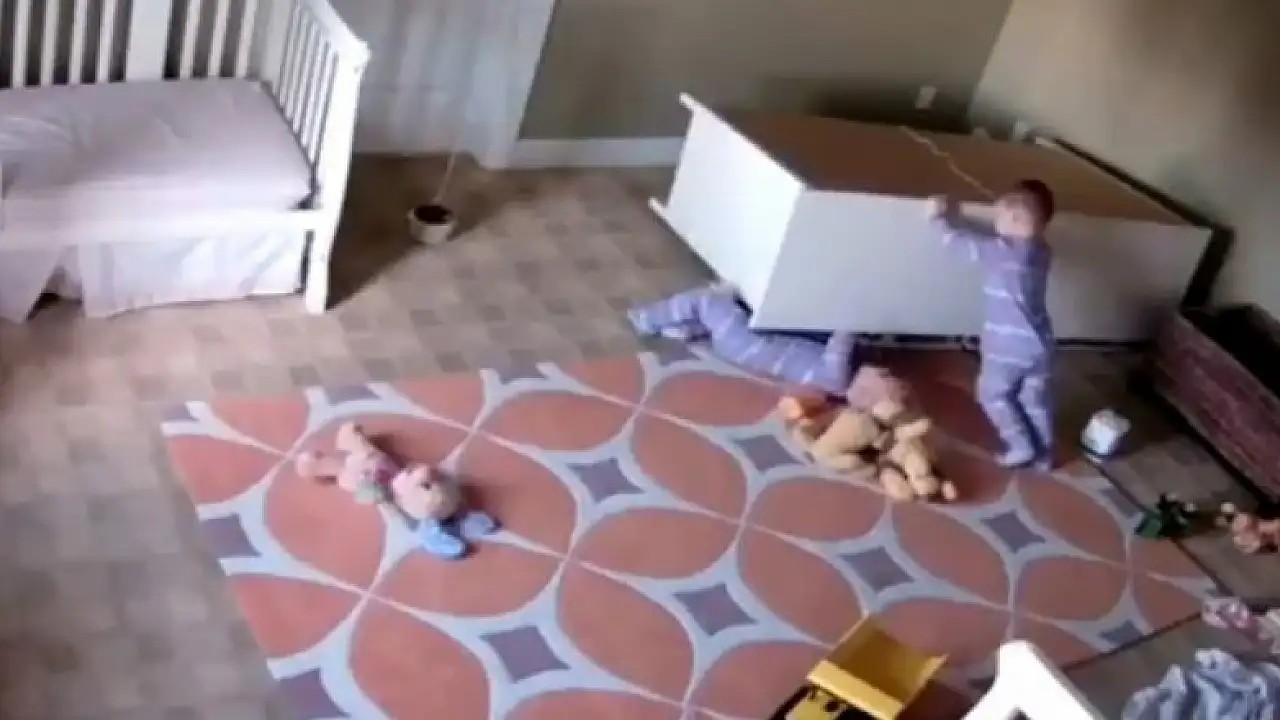 Küçük çocuk, şifonyerin altında kalan kardeşini böyle kurtardı.
