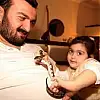 Samsun'da yaşayan Ferdi Demir, 3 yaşındaki kızı İclal'in isteği üzerine aldıkları pitonu evcil hayvan olarak evde besliyor.
