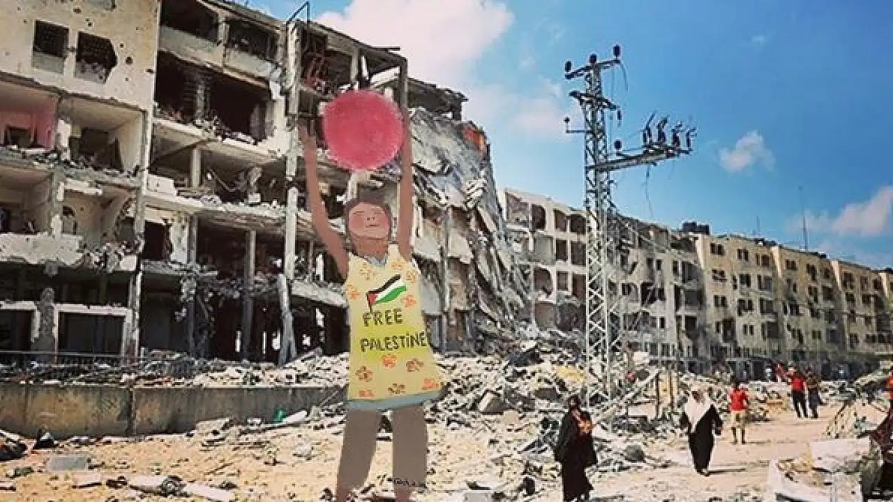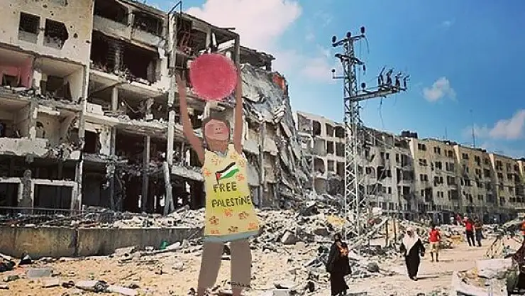 Filistin bayrağı, özgürlüğü sembolize eden kuşlar ve Kudüs'teki Kubbet'üs-Sahra'ya sarılan çocukların yer aldığı görseller, sosyal medya paylaşımlarıyla da geniş bir kitleye ulaşıyor.