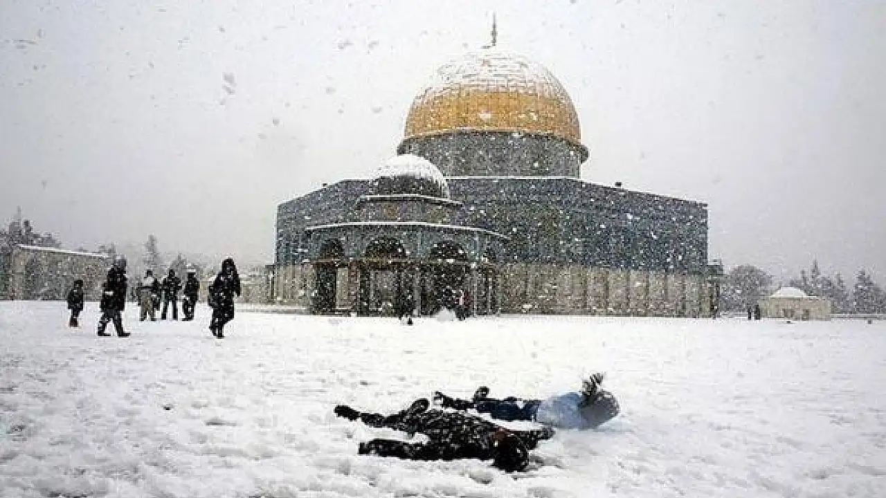 Kudüs'te pazar gecesinden beri süren şiddetli fırtına yerini kar yağışına bıraktı. Yaklaşık bir saat süren kar eski şehrin içinde güzel görüntülere yol açarken, Harem-i Şerif içindeki Kubbetül Sahra'da manzaralık görüntüler ortaya çıktı.