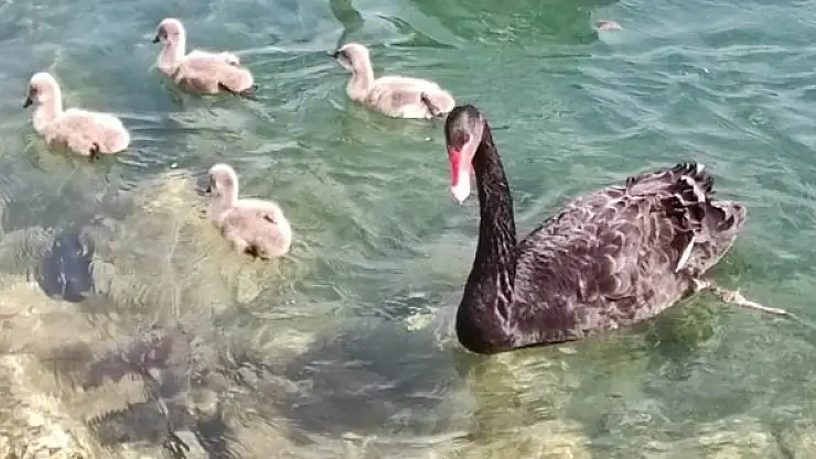 Parkta, bakıcısının "Arap" ismini taktığı kara kuğunun 4 yavru dünyaya getirmesinin ardından kuğu sayısı 10'a çıktı.