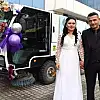 Gelin ve damadı mini süpürge aracında gören vatandaşlar ise gözlerine inanmadı. Çift, nikahlarının kıyılmasıyla mutluluğa evet dedi.