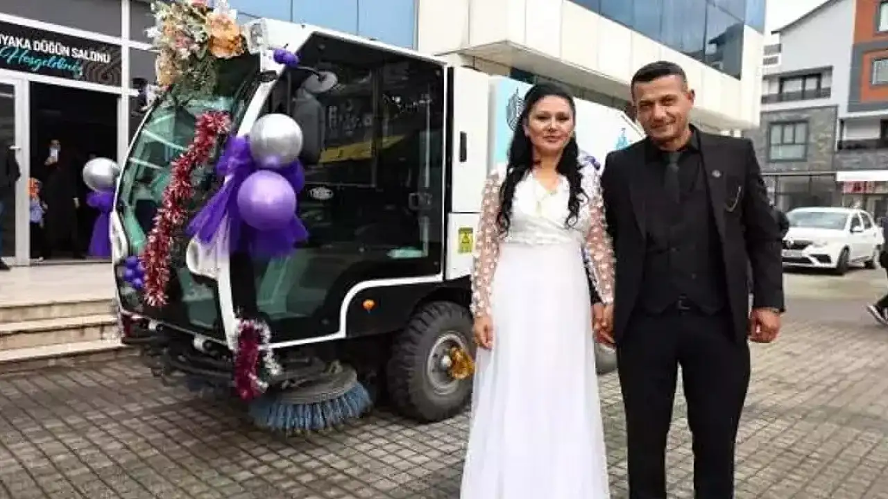Kocaeli'de Türkan Baylan, şoförü olduğu belediyenin mini süpürge aracını gelin arabası yaptı. Süpürge aracındaki gelin ve damadı görenler gözlerine inanamazken, çiftin şehir turu renkli görüntüler oluşturdu.