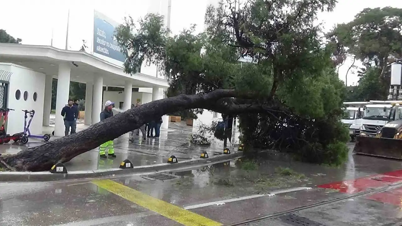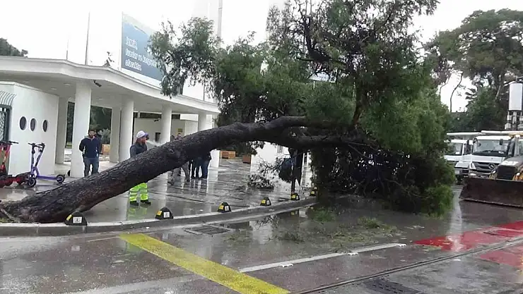 İzmir'in Konak ilçesinde bulunan Kültürpark önündeki bir ağaç, bir anda devrildi. Ağacın devrilmesi esnasında kaldırımda kimsenin olmaması, facianın önüne geçti.