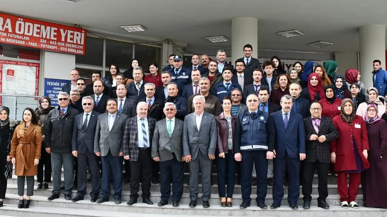Başkan Yıldız, çalışanlarla hatıra fotoğrafı çekiminin ardından belediye binasından ayrıldı.