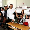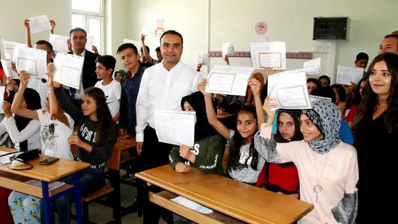 Konuşmaların ardından Kaymakam Budan, öğrencilere karnelerini dağıttı.