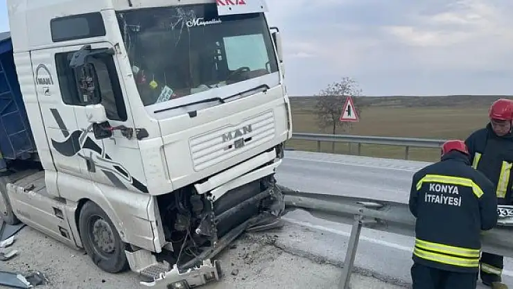 KONYA (AA) - Konya'nın Kulu ilçesinde refüjdeki bariyere çarpan tırın sürücüsü yaralandı.İbrahim Tuğrul yönetimindeki 42 AJN 333 plakalı tır Konya- Ankara kara yolu Kulu yakınlarında refüjdeki bariyerlere çarptı.