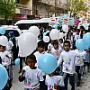 Yürüyüş sonunda "Farkındayız, Yanındayız" yazılı pankarta katılımcılar el izi bıraktı, havaya balonlar salınmasının ardından çocuklara pamuk şeker dağıtıldı.