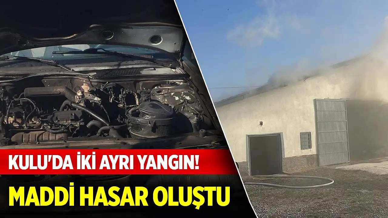 Konya'nın Kulu ilçesinde iki ayrı yangında hasar meydana geldi.