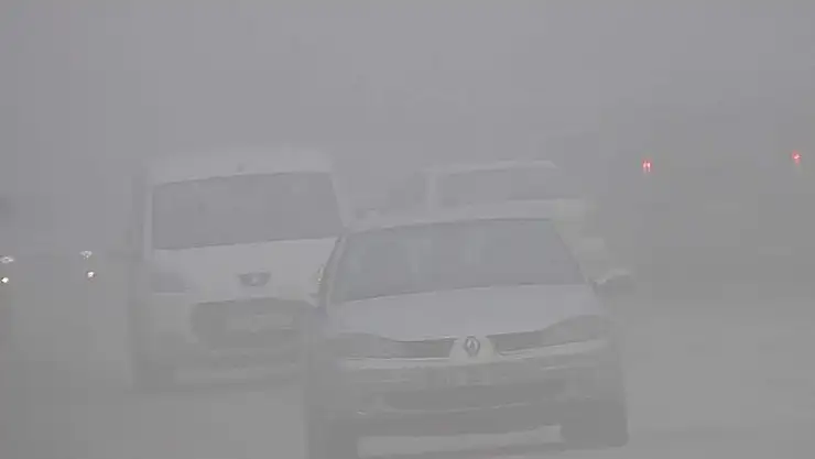 Konya'nın Kulu ilçesinde sis nedeniyle görüş mesafesi düştü.