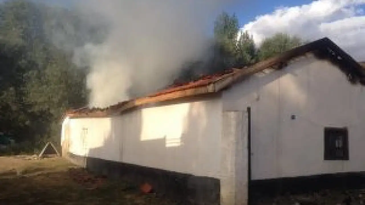 Yeni Mahalle Yaşar Doğu Caddesi'nde Hasan Koç'a ait samanlık ve aşhane olarak kullanılan evde, bilinmeyen bir nedenle yangın çıktı.