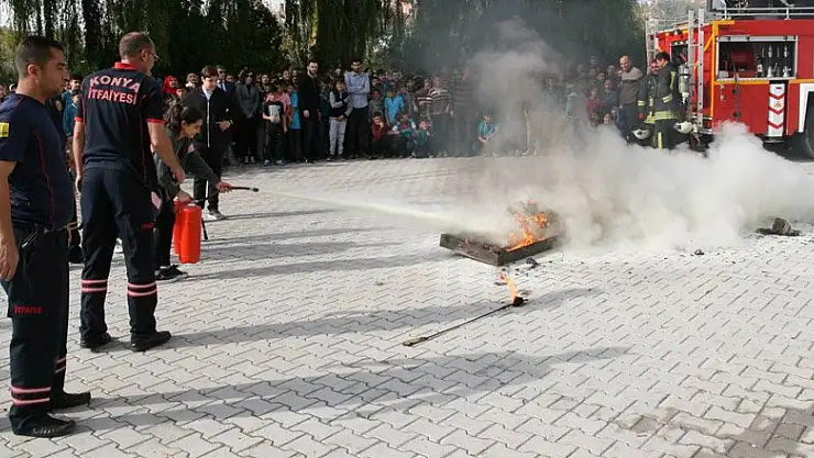 Kulu'daki ortaokulda yangın tatbikatı yapıldı