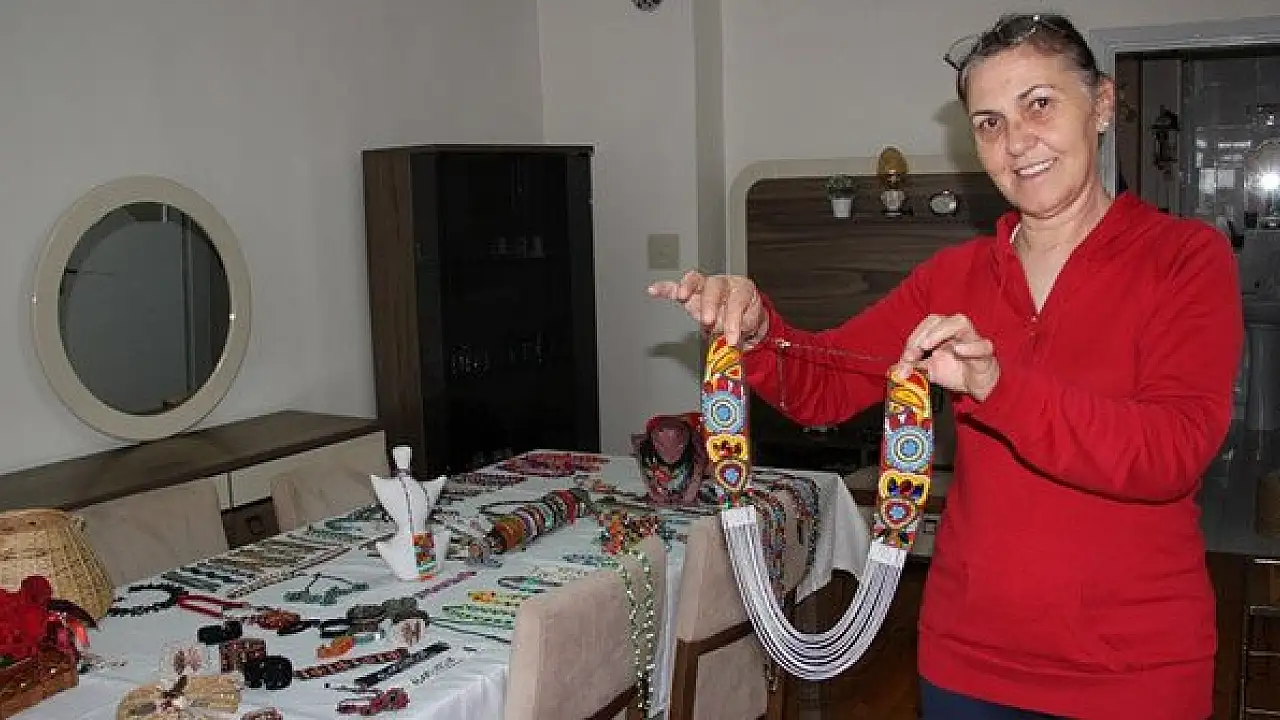 Konya'nın Seydişehir ilçesinde kum boncuk ile el işlemeciliği yapan Meral Coşkun hem sanatla uğraşıyor hem de ev ekonomisine katkı sağlıyor