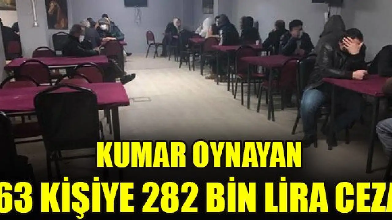 Baskında sosyal mesafe kuralını ihlal ederek kumar oynadıkları tespit edilen 63 kişiye toplam 282 bin 618 lira ceza kesildi.