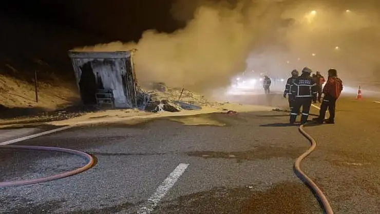 Kocaeli Kuzey Marmara Otoyolu'nda seyir halindeyken alev alan kumaş yüklü tır küle döndü.