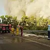 Bazı evlerin zarar gördüğü ve 2 iş makinesinin yandığı yangını söndürme çalışması sürüyor.