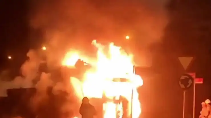 Kundaklandığı iddia edilen kamyon alev alev yandı
