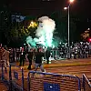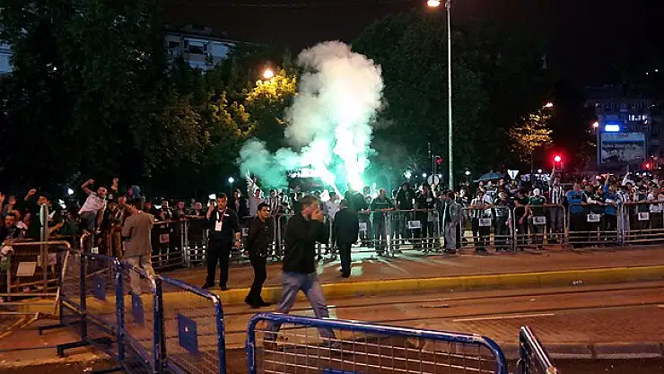 Sloganlar atan taraftar grupları, zaman zaman da polislerin üstüne cam ve pet şişeler ile taş attı. Kendi arasında da kavga eden kalabalık, polisin kurduğu barikatları yıkmaya çalıştı.
