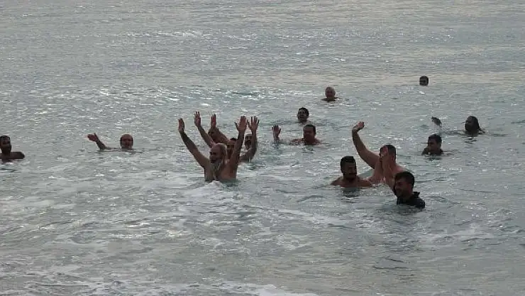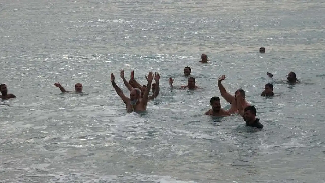 MERSİN Bozyazı'da İlçe Sağlık Müdürü Bahadır Karakoç öncülüğünde bir grup, 2013'ten bu yana sürdürdükleri ve her yıl bir temanın işlendiği 1 Ocak'ta denize girme etkinliğini, 2022'de kuraklığın önüne geçmek için 'Doğamızı ve suyumuzu koruyalım' teması ile gerçekleştirdi.
