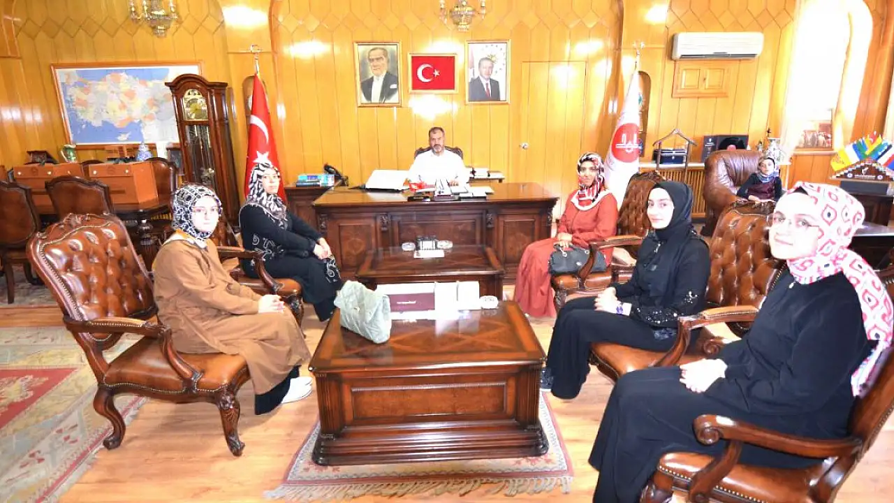 Süreyya Yıldızı Kız Kur’an Kursu Yöneticisi Hatice Doğan, Kurs Öğreticileri Fatma Cihan ile Hacer Laçin rehberliğinde Konya İl Müftüsü Doç. Dr. Ali Öge’yi ziyaret eden Süreyya Yıldızı Kız Kur’an Kursu öğrencileri yapmış oldukları kurabiyeleri kurslarında satarak elde ettikleri geliri TDV Konya Şubesine bağışlamaktan gurur duyduklarını söylediler.