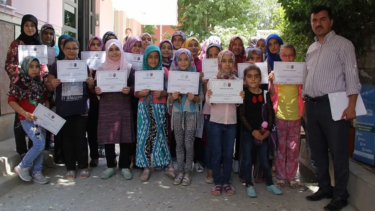 Diyanet İşleri Başkanlığı ve Spor Genel Müdürlüğü arasında imzalanan protokolle Yaz Kuran kursuna gelen öğrencilere katılım belgeleri verildi