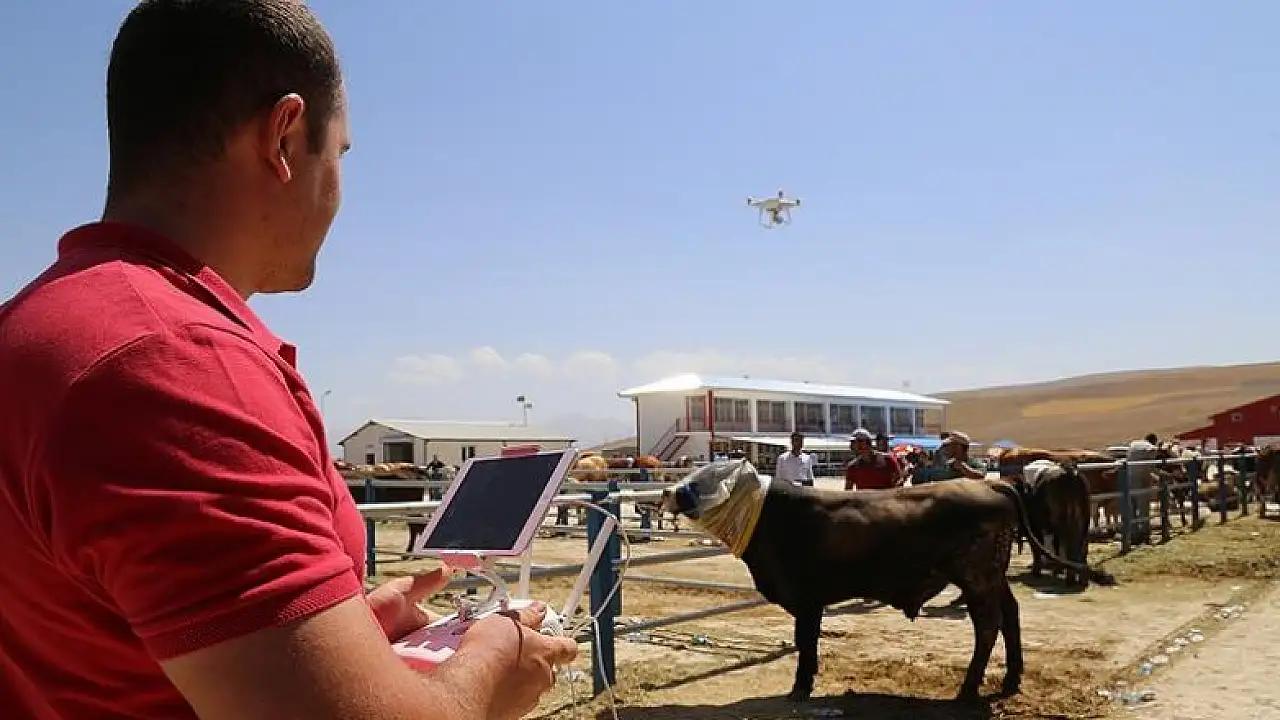 Hayvan pazarında, her gün birlerce kurbanlığın alım, satımı ile sevkiyatının yapıldığını göz önünde bulunduran polis, tüm bu tedbirlere ek olarak "drone"lu takip uygulamasını başlattı.