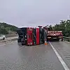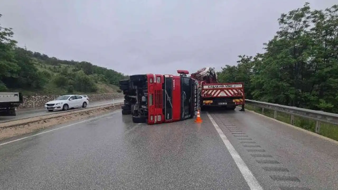 Kastamonu'dan yüklediği büyükbaş Kubranlıkları İstanbul'a getiren tır, Karabük'te yoldan çıkarak devrildi.