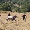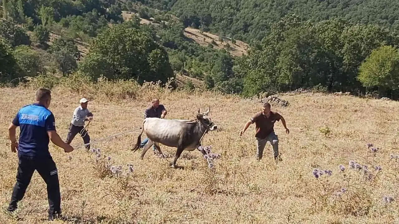 Balıkesir'in Kepsut ilçesinde Kurban Bayramı'nda sahibinin elinden kaçan dana, bayramdan 26 gün sonra yakalandı.