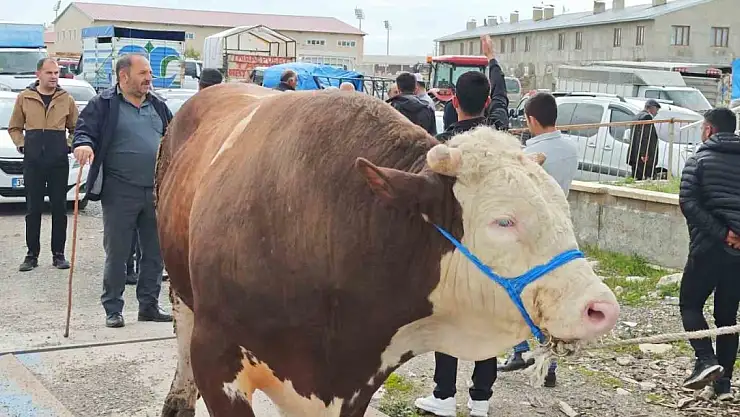 Erzurum'un Aşkale ilçesinde pazar günleri kurulan canlı hayvan pazarında yaklaşan Kurban Bayramı münasebetiyle kurbanlık hayvanlar da görücüye çıkmaya başladı.
