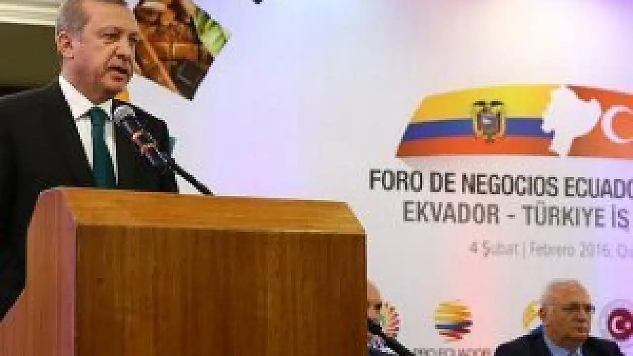 Türkiye - Ekvador İş Forumu'nda iki ülke işadamlarına hitap eden Erdoğan, forumun düzenlenmesindeki katkıları nedeniyle PRO-EKUADOR ve DEİK’in yöneticilerine teşekkür etti.