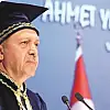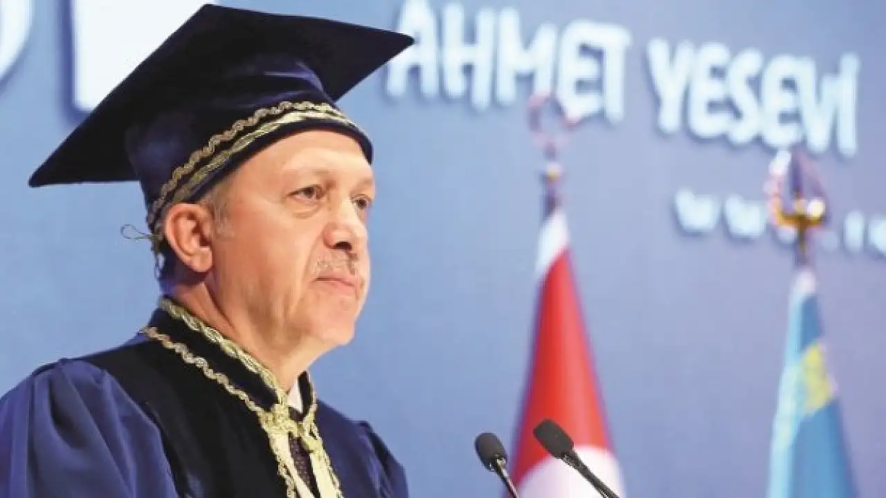 Erdoğan'a, daha sonra Türkistan kentindeki Hoca Ahmed Yesevi Üniversitesi'nde fahri profesörlük unvanı verildi. Cumhurbaşkanı Erdoğan, buradaki törende yaptığı konuşmada, Türkiye'nin çevresindeki sorunlara değinerek, Suriye'deki zulmün hem insani hem siyasi bakımdan giderek kötüleştiğini, Irak'ta mezhepçilik fitnesinin hala tüm ateşiyle yandığını belirtti. Dünyanın birçok ülkesindeki krizin sürdürülemez olduğunu belirten Erdoğan, “İşte biz bu sürdürülemez uluslararası düzenin değişmesi için her platformda sesimizi yükseltiyor, itirazlarımızı dile getiriyoruz. Küresel vicdanı uyandırma ve bunu uyandırana kadar da bunları söylemeye devam edeceğiz” dedi.