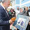 Canik Belediye Başkanı İbrahim Sandıkçı'ya kursiyerler tarafından hazırlanan kendi resminin yer aldığı tablo takdim edildi.