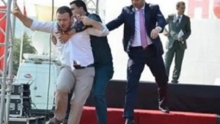 Şenliklerin yapıldığı tören alanında dün, Başbakan Ahmet Davutoğlu'nun konuşması öncesinde BBP Genel Başkanı Mustafa Destici'ye söz verilmemesini protesto için platforma çıkarak kürsüyü deviren Ö.M'nin de aralarında bulunduğu 3 kişi gözaltına alınmıştı.