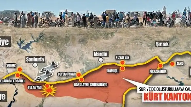 Suriye Kürt bölgesine yeni bir kanton oluşturmak amacıyla Suriye Kürt Partisi PYD ile uluslararası koalisyonun ortak saldırıları devam ediyor. Bu çerçevede Tel Abyad’a havadan bombardıman düzenleyen koalisyon güçlerinin yanı sıra karadan müdahale eden PYD nedeniyleAraplar ve PYD karşıtı Kürtlerin Türkiye sınırına doğru göçe zorlandıkları belirtildi. Demografik yapının değişmesi amacıyla başlatılan bu girişim çerçevesinde YPG güçlerinin de boşaltılan bölgelere yerleştiği ifade ediliyor. Star’a konuşan resmi kaynaklar, önceki gün uluslararası koalisyonun havadan bombalaması sonucu 20’si çocuk 35 kişinin hayatını kaybettiğini hatırlattılar. Bombardımanlar Akçakale’nin tam karşısında bulunan Suriye’nin Nustel, Hubeyce, Zeydi ve Arba bölgelerinde yoğunlaştı. Sınıra yığılan Suriyeliler içeri alınırken, bundan sonraki durumlarda insani bir kriz yaşanmaması halinde geçişlere izin verilmeyeceği belirtildi. Kobani ile Kamışlı bölgesini birleştirme çabasının PYD ve uluslararası koalisyon güçleri tarafından birlikte yürütüldüğününaltı çizildi.