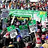 Yürüyüşe başkanlık eden Patrick Kelly, kalabalığa hitabında “Donuyor olabiliriz, ama dünyadaki en iyi sebepten dolayı donuyoruz” dedi.