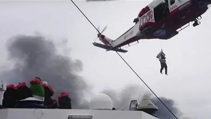 Geçtiğimiz günlerde Yunanistan'ın Patra Limanı'ndan İtalya'ya sefer yaparken yanmaya başlayan 'Norman Atlantic' adlı feribottaki kurtarma çalışmalarının yeni görüntüleri yayınlandı.
