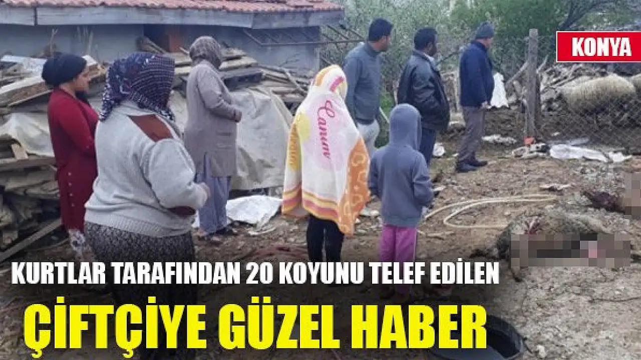 Konya'nın Seydişehir ilçesinde önceki gün aağıla giren iki kurt, koyunlardan 20'sini telef etmiş, birini de yaralamıştı. Hayvancılıkla uğraşan Ali Dinç'i sevindirecek haber geldi.