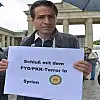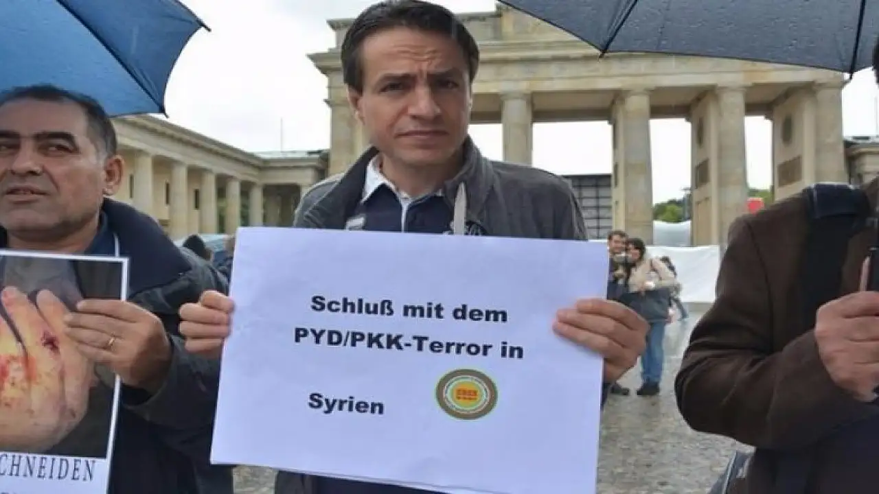 Berlin'de toplanan bir grup protestocu, PKK/PYD'nin Suriye'nin Kamışlı kentinde gösteri düzenleyen Kürtlere saldırmasını ve ENKS üyelerini alıkoymasını protesto etti.