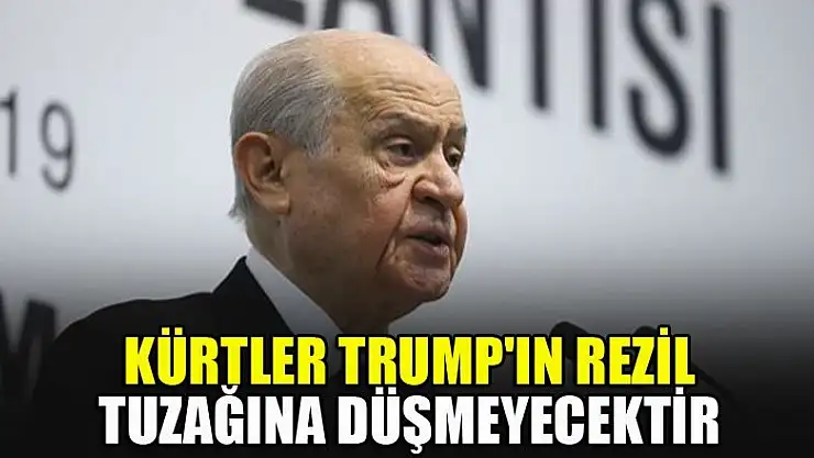 Bahçeli, ABD Başkanı Trump'ın Türkiye'yi hedef küstah sözlerine ilişkin açıklamada bulunarak, "İnanıyorum ki Kürtler Trump'ın rezil tuzağına düşmeyecektir." ifadelerini kullandı.